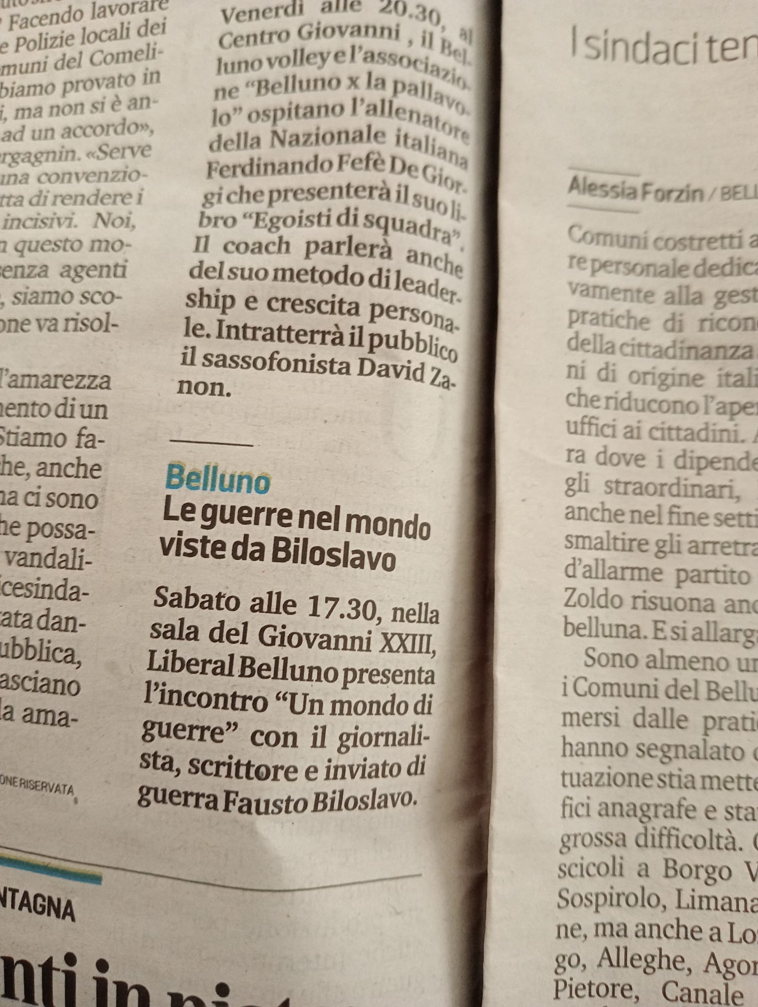 Un mondo di guerre. Fausto Biloslavo sabato al Centro congressi di Belluno per I Grandi incontri di Liberal