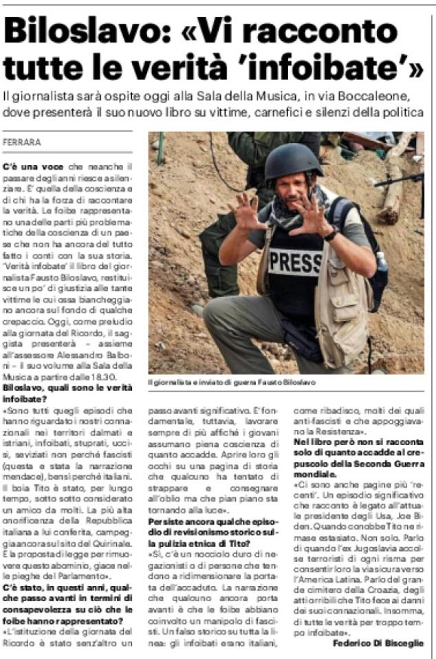 Biloslavo: «Vi racconto tutte le verità 'infoibate'»