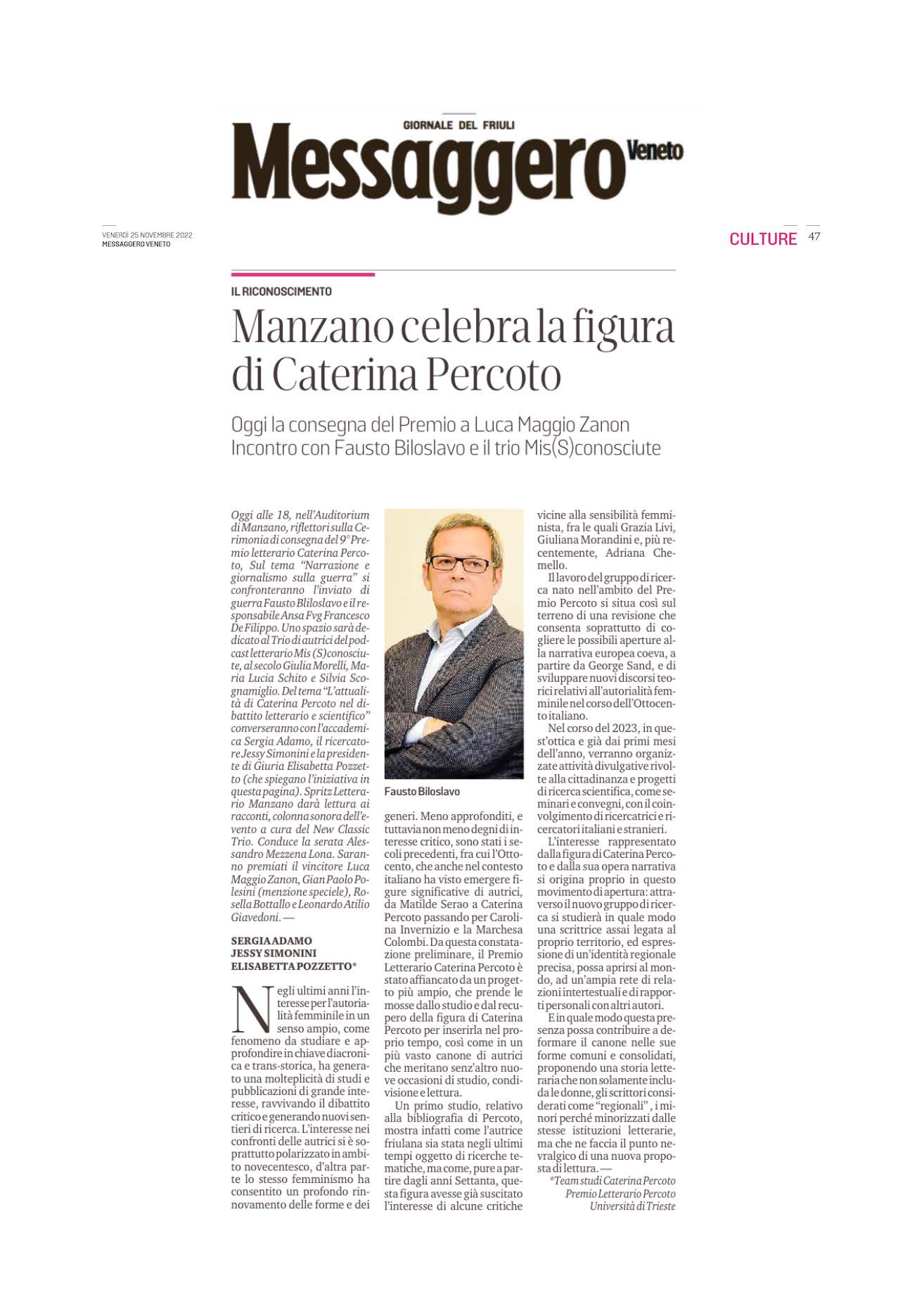 Biloslavo: "Percoto cronisat d'altri tempi"