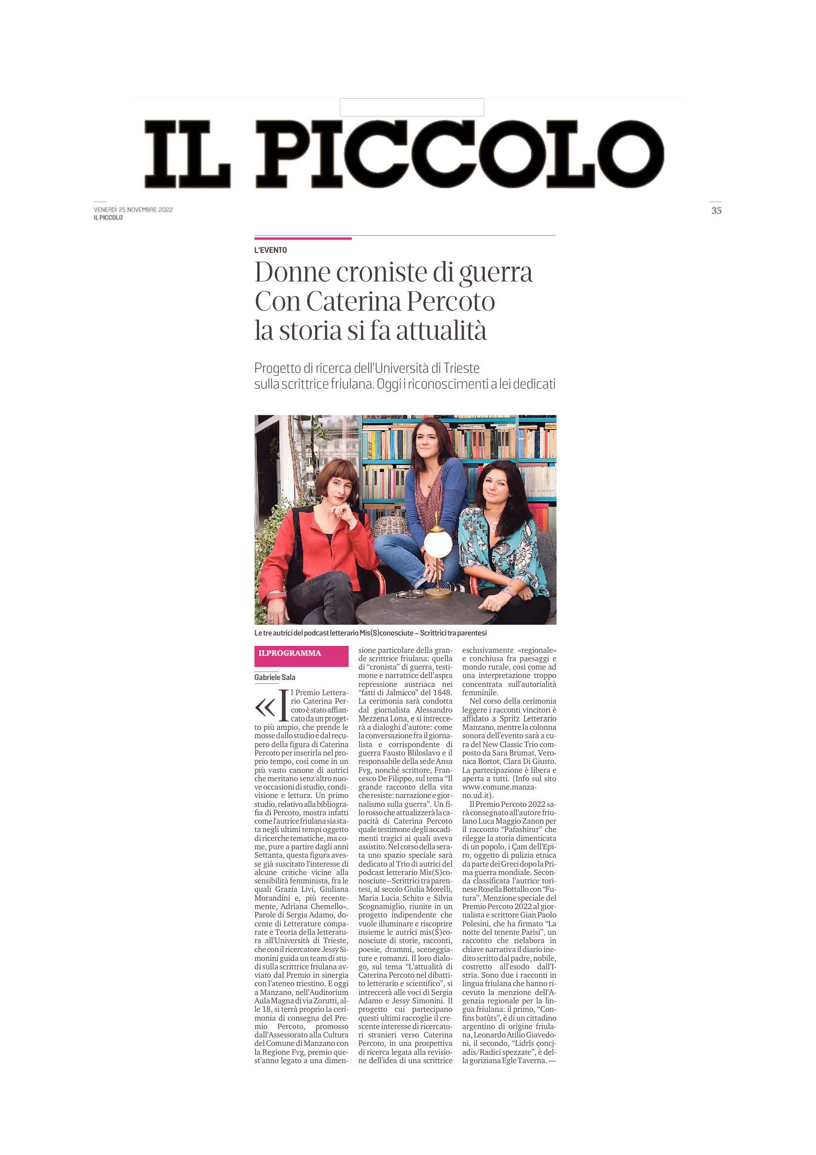 Donne croniste di guerra Con Caterina Percoto la storia si fa attualità