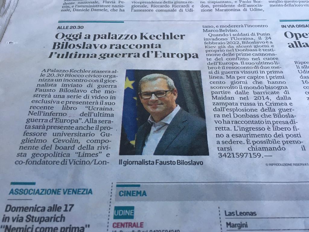 l giornalista e inviato di guerra de Il Giornale, Mediaset e Panorama presenta il suo racconto in prima linea del conflitto che sta sconvolgendo il Vecchio continente... [vai all'allegato] [continua]