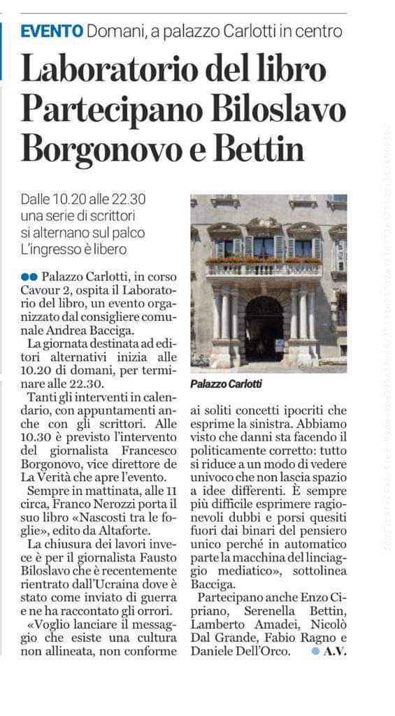 Laboratorio del libro partecipano Biloslavo, Borgonovo e Bettin