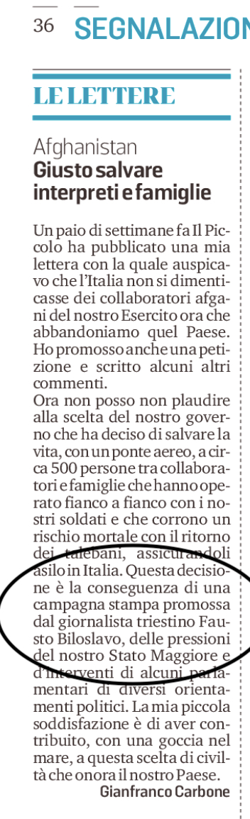 Questa decisione è la conseguenza di una campagna stampa promossa dal giornalista triestino Fausto Biloslavo... [vai all'allegato] [continua]