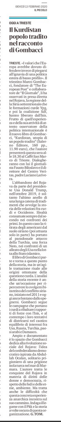 Il Kurdistan popolo tradito nel racconto di Gombacci